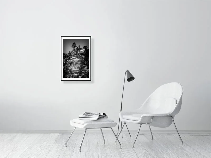 Ponderosa Pines find scant purchase on the many layered outcroppings of sedimentary stone in Zion National Park, Utah.